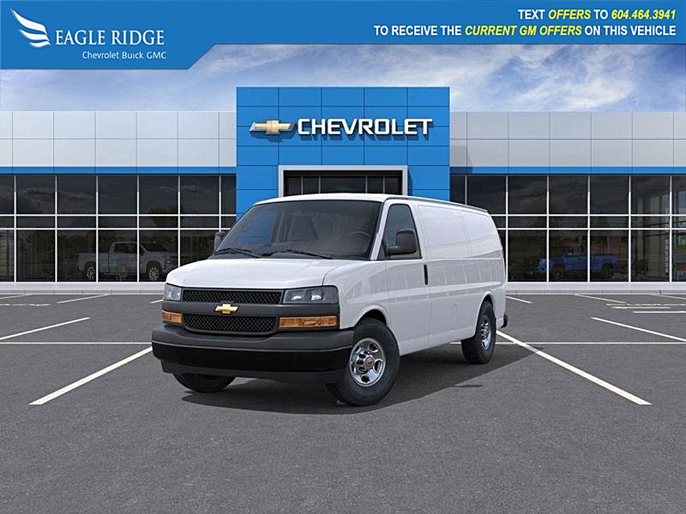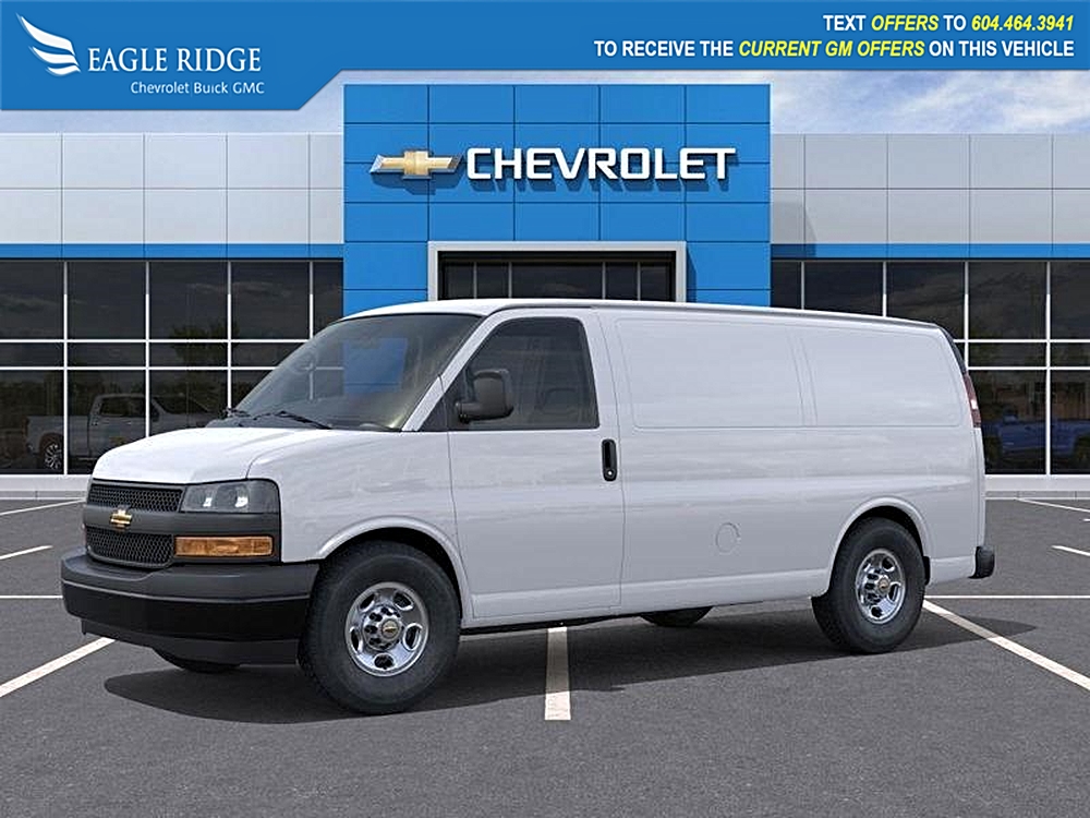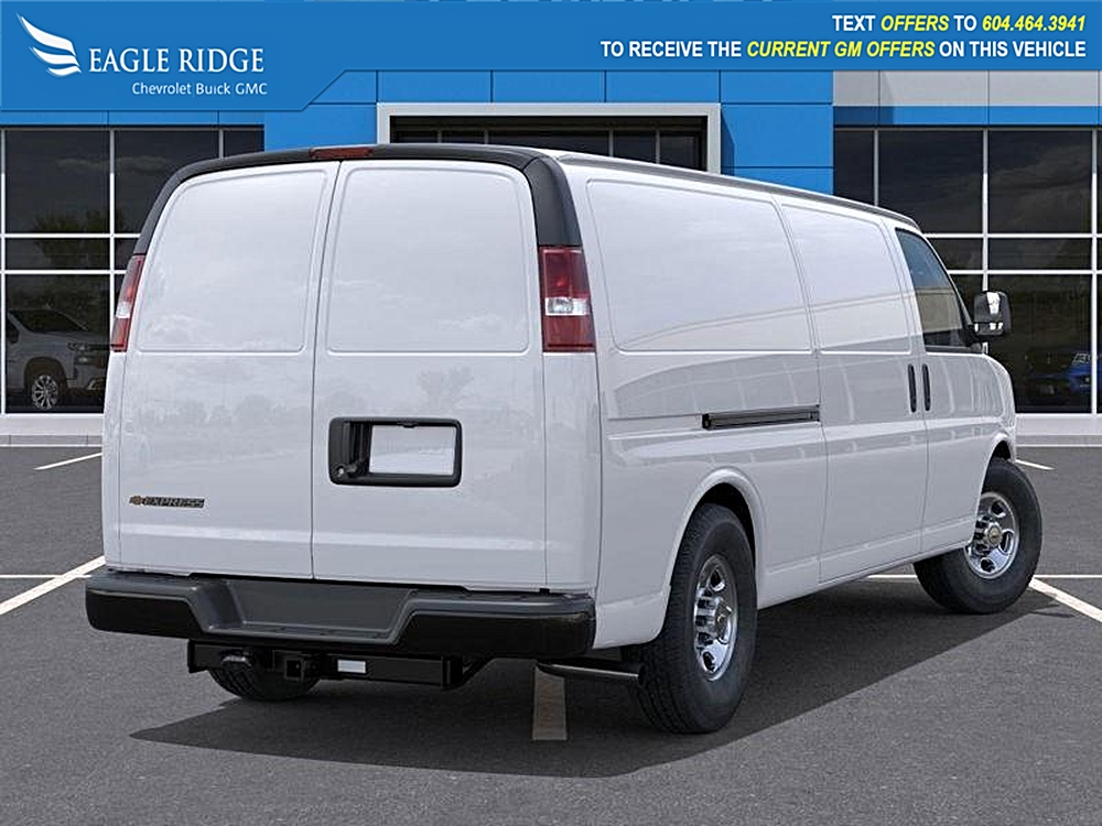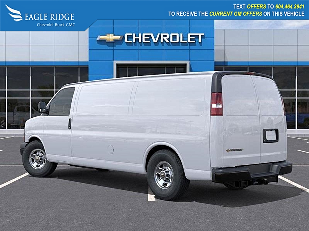 2025 Chevrolet Express 3500 W/T Extended Length Cargo Van, Rear-Wheel Drive, Summit White exterior, body-on-frame construction, 4.3L V6 engine producing…